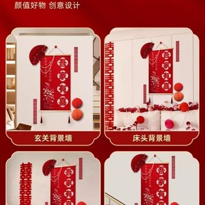 結婚式の部屋の装飾背景壁結婚式の新しい家リビングルーム玄関階段結婚式のお祝いスクロールセット中国風ペンダント