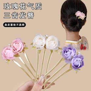 新しい中国風のバラのヘアピン、古代スタイルの漢服のヘアピン、妖精の頭飾り、中国風のレトロな日常の多用途デザインのヘアピン