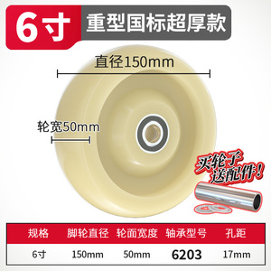 トロリーホイール 高耐久ナイロン単輪トロリーホイール フラットトロリーホイール 耐荷重ホイール 6inch キャスター ユニバーサルホイール