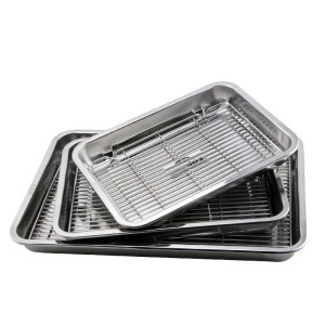 ステンレス鋼角皿ネット付き深浅オイルコントロールラック商業トレイ排水トレイオイルフィルタートレイ家庭用餃子トレイ 304