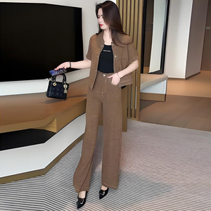 アマゾンファッションスーツレディース夏の新作半袖ジャケットハイウエストワイドレッグパンツ気質外国貿易ツーピーストレンドセット
