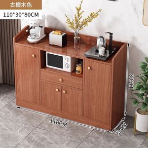 無垢材の色のティーキャビネットサイドボード壁一体型家庭用新しいキッチンキャビネット食事準備キャビネット収納キャビネット収納キャビネット