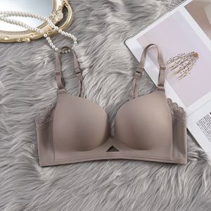 日本貿易ブラジャー シームレス プッシュアップ 調節可能な光沢のある薄い小さな胸 空カップなし リムなし下着 女性用