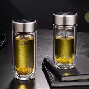 Xino 二重層ガラスグースエッグカップ男性と女性のための火傷防止ティーカップ大容量フィルター付きビジネスギフトボックスウォーターカップ