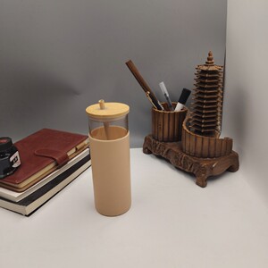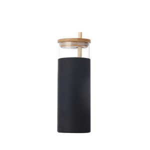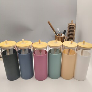 Amazon クロスボーダーガラスストローカップ竹蓋シリコンカバー断熱ガラスカップ卸売プリントロゴ高温耐性ウォーターカップ