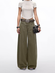 楊冪ミスの同型バージョン25夏新作レトロミリタリーグリーンルーズボックスパンツデニムパンツ女性工場