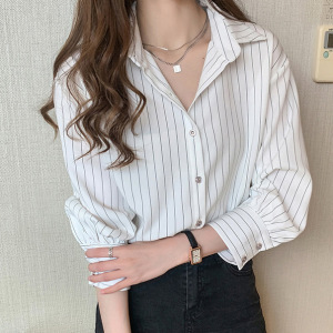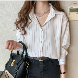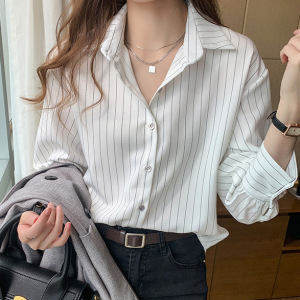 ヨーロッパとアメリカのクロスボーダー 2025 新しいラペルトップレトロホワイトストライプシャツ女性用