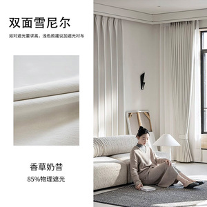 2025新品両面同色シニールカーテン寝室遮光クリーム风リビング高级感カーテン