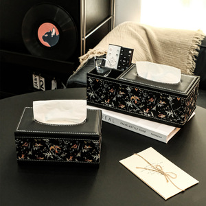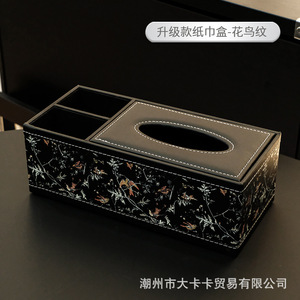中古花鳥皮革ティッシュケース高級感茶数家庭用皮質紙引き箱印logoホテルpu引き箱