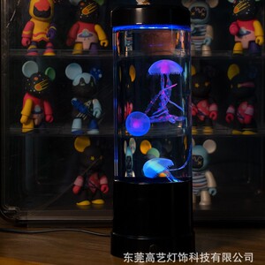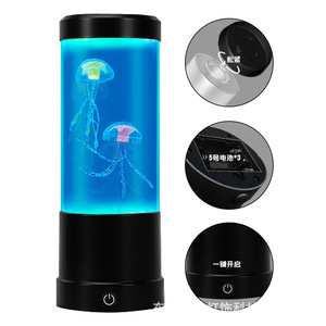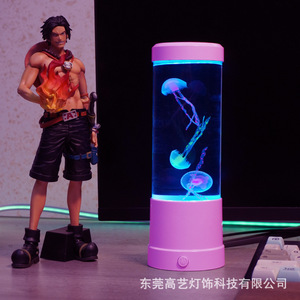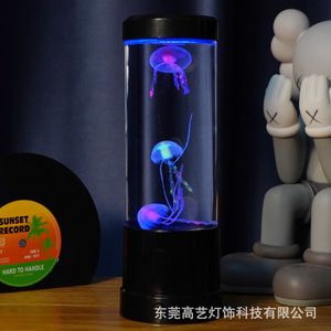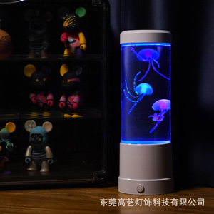 跨境新款中号仿真圆柱LED水母灯usb插电七彩变色氛围夜灯水母灯