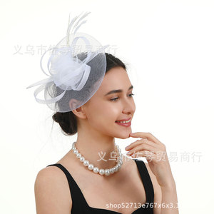 メッシュフェザーヘッドドレス ヴィンテージ エレガント ブライダル ウェディング ヘッドフラワー ヘアアクセサリー ティーパーティー パフォーマンス 女性 ヴィンテージスタイル