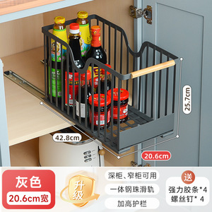 隙間が狭いキャビネットプルバスケット引き出し式キッチン調味料収納ラック層状引き出しラック内蔵キャビネット超深型