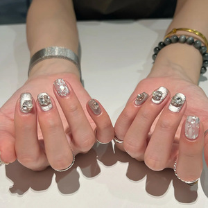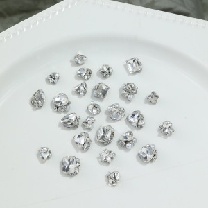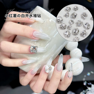 Xiaohongshu ホットセールの白湯パイルダイヤモンド、大小の透明白の曲がったハート、太い正方形のネイルアートダイヤモンドボール、完成したネイルダイヤモンド