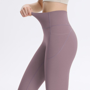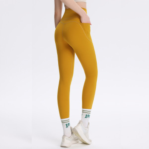 ピーチヒップヨガパンツ女性のハイウエストおなかコントロールレギンスランニングスポーツフィットネスパンツポケット付きピラティストレーニングパンツ