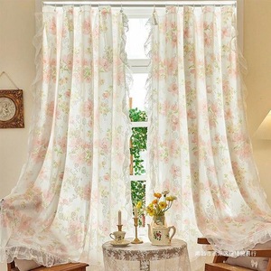 フランスの花柄カーテン、遮光、パンチングなしの取り付け、賃貸住宅の改修、寝室の出窓、2025年の新しいスタイル