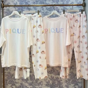 ソフトアイスクリームクマドーナツ漫画プリントラウンドネック半袖ズボン女性のパジャマホームウェアセット