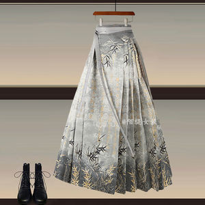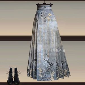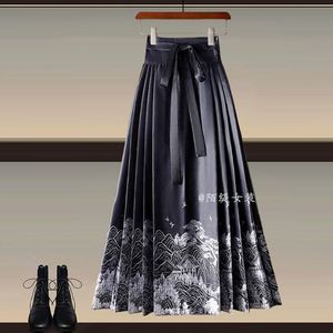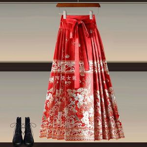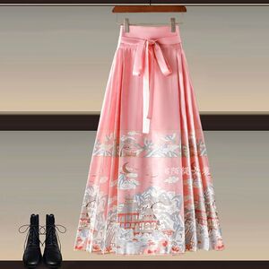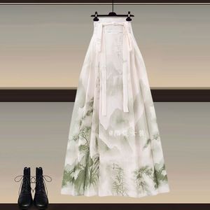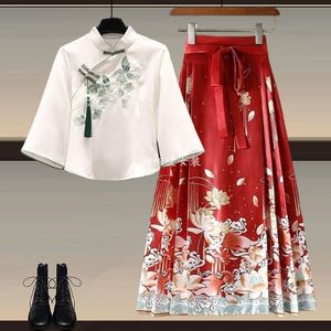 新しい中国風の女性用衣装セット 2025 新しい大きいサイズの漢服半袖トップと中国風の馬面スカート 2 点セット
