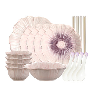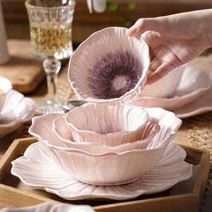花びら陶磁器ご飯碗釉薬下彩食器セット家庭用2025新型特別美しいヨーグルト碗皿