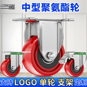 カスタマイズされたユニバーサルホイール中型キャスターポリウレタンホイール 4inch 5inch 耐摩耗性トロリーホイールユニバーサルブレーキ付きプーリー