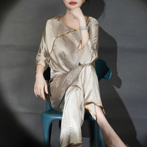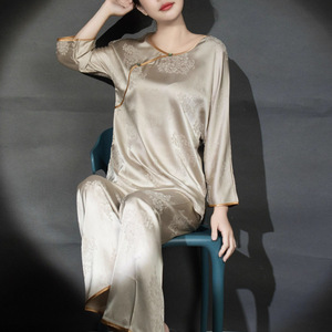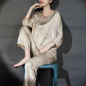 新しい中国風のシルクパジャマ女性の夏の七分袖マルベリーシルク国民風ホームウェアギフトボックスセット