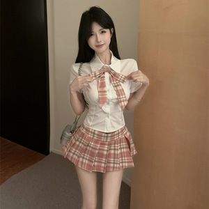 小柄な学院風ファッションスーツ純欲jk制服蝶結び半袖シャツ格子縞百シワ半身スカート