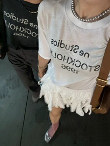 クロスボーダー高品質 Acn Stu25 春夏ダーティーウォッシュ加工文字プリント半袖Tシャツ 男女兼用