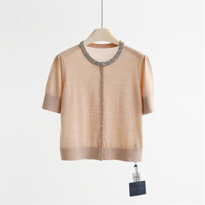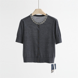 BRAZITY2025秋の新ファッション多用途シンプルな気質スタッズラウンドネック半袖セータートップ