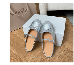 幅広で太めのフレンチリボンつま先ハーフスリッパ、夏用女性用、幅広で太い足用のスリッポンミュールシューズ