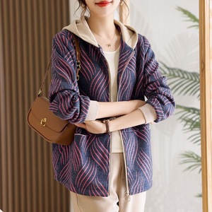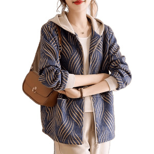 中年母親向け春秋コート、ショートフード付きカジュアルトップス、中高年向けおしゃれジャケット、高貴な婦人コート