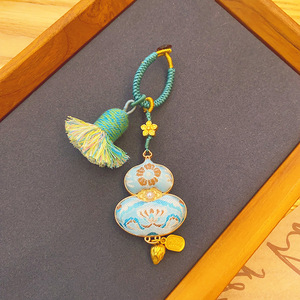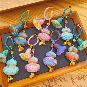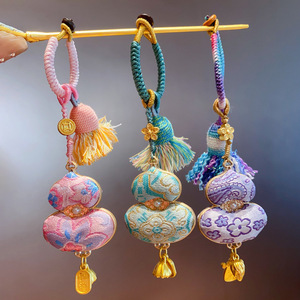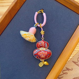 (完成品)新中式無形文化遺産手作り宋錦如意葫芦キーホルダー飾りバッグチャーム女性用キーリング