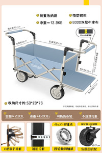 Jiangyu アウトドア折りたたみカートはキャンピングカーに座って子供が横になってプッシュプル一体型キャンプトレーラートラベルカーリアオープン
