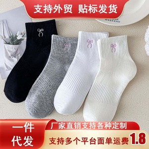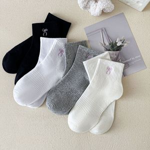 ピンクのリボンソックスレディースソックス夏薄い通気性韓国スタイルミッドチューブかわいい甘い夏フラット通気性