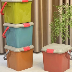 大号加厚手提带盖收纳桶可坐人收纳凳方形多用桶钓鱼桶收纳洗澡桶