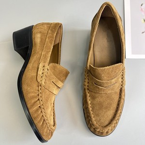 スペイン MD レディースシューズ通勤本革スリッポン太ヒールハイヒールローファー英国スタイルラウンドトゥカジュアルシューズ女性用