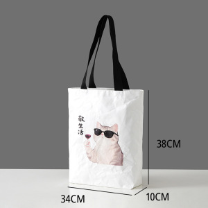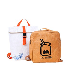 トレーニングクラスデュポン紙袋カスタムプリントロゴ環境に優しい断熱ハンドバッグプリーツ洗浄混練デュポン紙袋