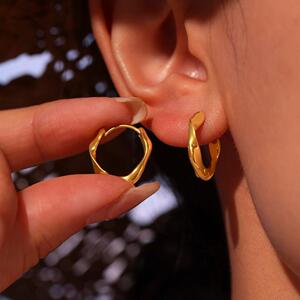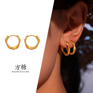 シュガーキューブチタン鋼金メッキメビウスイヤリングレトロコールドスタイルツイストイヤリングシンプルなウェーブツイストイヤリング女性用