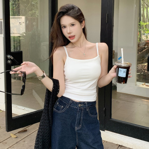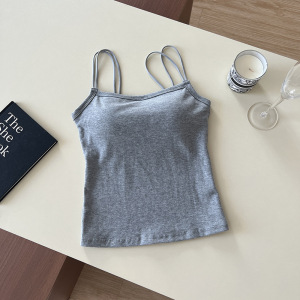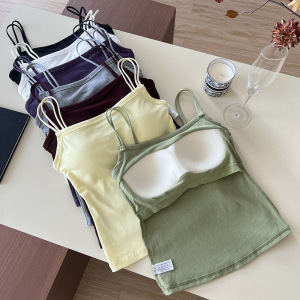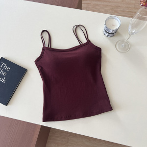 初秋のワンラインネックホットガールビューティーバックキャミソール女性用胸パッド付きインナーとアウター着用痩身チューブトップボトムストップ