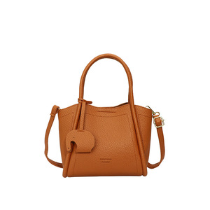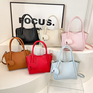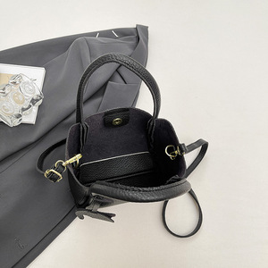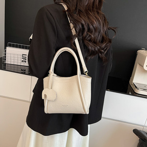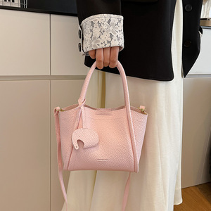 夏の新スタイルライチ柄ハンドバケットバッグシンプルな無地通勤ファッションショルダーバッグ韓国風ファッションクロスボディバッグ