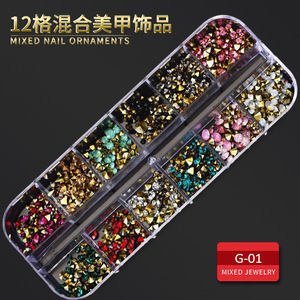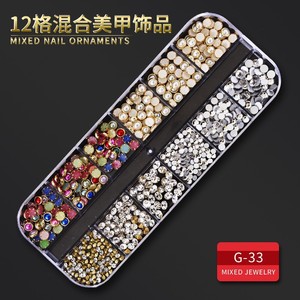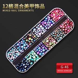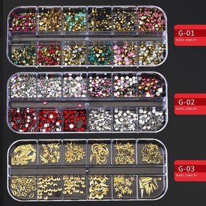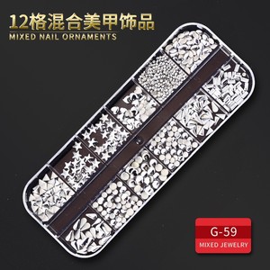 ネイルアート用小物、ラインストーンネイルデコレーション60種類、キラキラ輝くロングストリップボックス、特殊形状リベット、パール、マーキスカット合金装飾