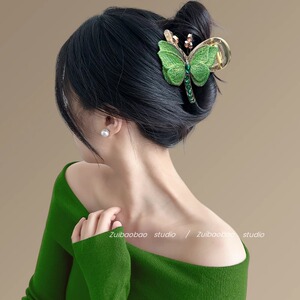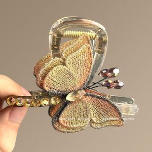 春の蝶の気質レトロスタイル刺繍蝶クリップ後頭部半分結びシャーククリップヘアアクセサリー旅行ヘアピン