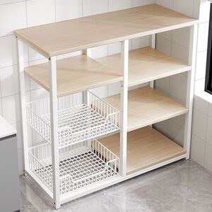 [アップグレードと強化] ホワイトオーク色 - [2 メッシュバスケット + 5 層ボード] 80*80CM