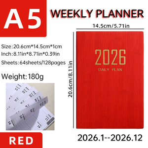 クロスボーダー 2026 a5 薄型ウィークリーカレンダー 365 日デイリープラン スケジュールブック レザーカバー マンスインデックス 年間カレンダー