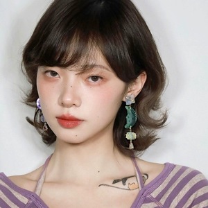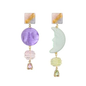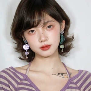 陰と非対称イヤリング、紫と晴れ緑の欠けた丸い西チムーンイヤークリップ、オリジナルデザイン、その他なし