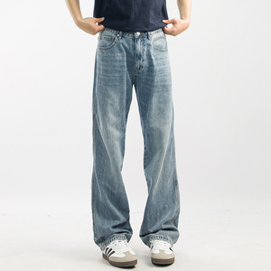 跨境xhh夏季薄款冰蓝牛仔裤子男生日系休闲宽松美式复古cleanfit