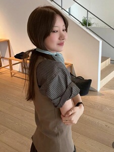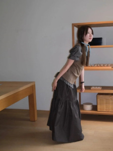 韓国25春モデルmo * oha新格子シャツ/半身スカート