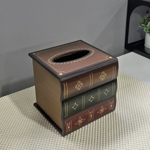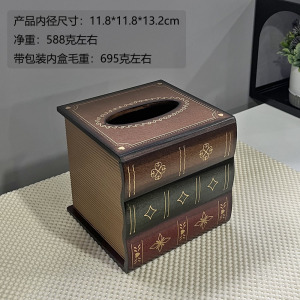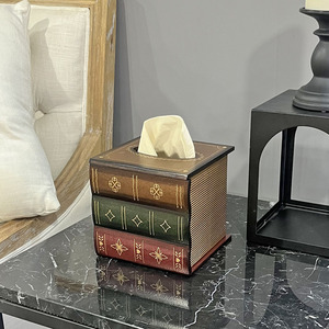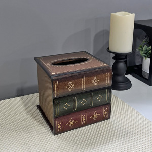 レトロなヨーロッパスタイルの正方形の偽の本のティッシュボックス模擬本の装飾装飾品リビングルームのティッシュボックスレストランのデスクトップティッシュボックス