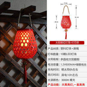 ソーラー屋外ライト中庭シャンデリア籐ハンギングツリーライトガーデンバルコニー装飾中国風のレトロな模造竹ランタン