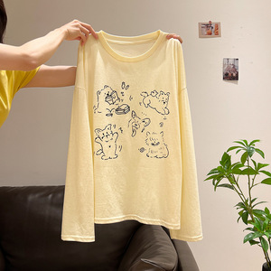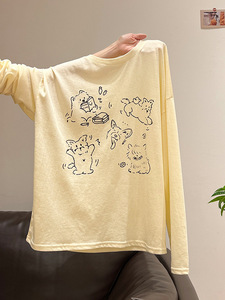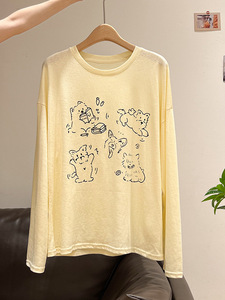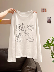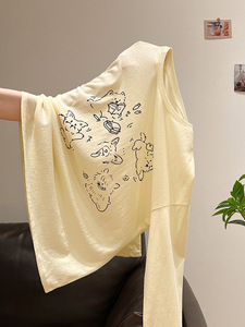 白色韩系印花微透防晒罩衫长袖T恤女2025年夏季新款宽松显瘦上衣