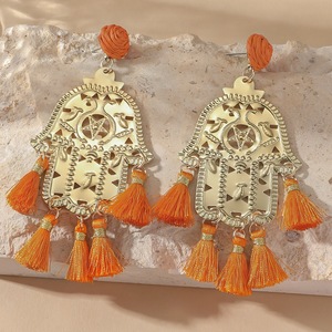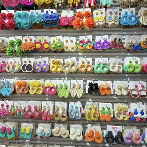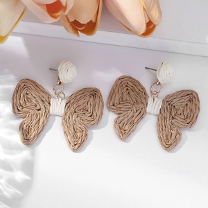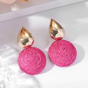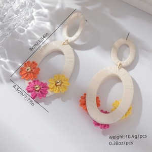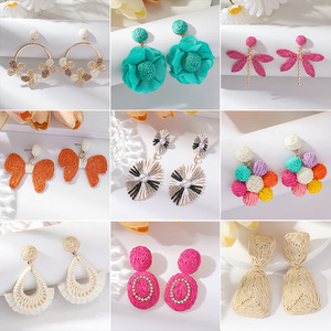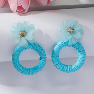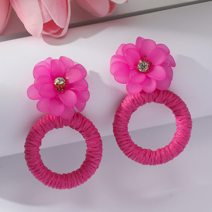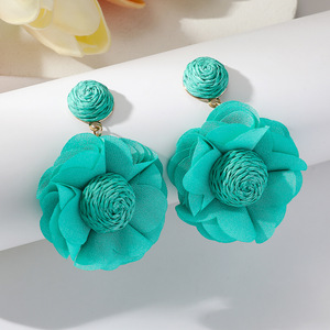 ホリデースタイルラフィアフラワータッセルイヤリング女性用、甘くてファッショナブルでハイエンドのイヤリング、ヨーロッパとアメリカのクロスボーダーイヤリング卸売