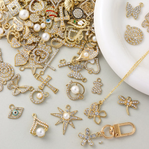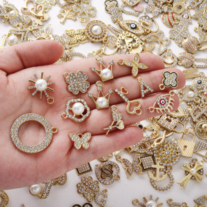 フルダイヤモンド合金電気メッキジュエリー diy アクセサリーイヤリングネックレス装飾ペンダントラウンドパールシンプルなアクセサリー電気メッキ